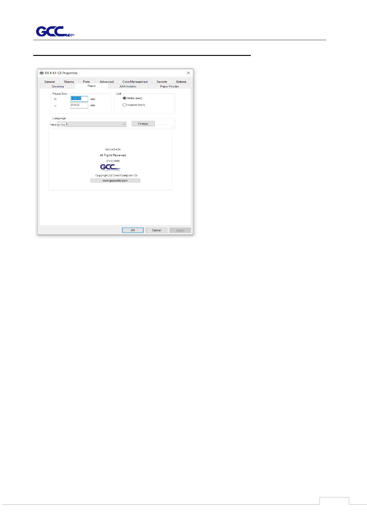 4.6.3 RX II-Creasing Print Driver setting > Paper Page