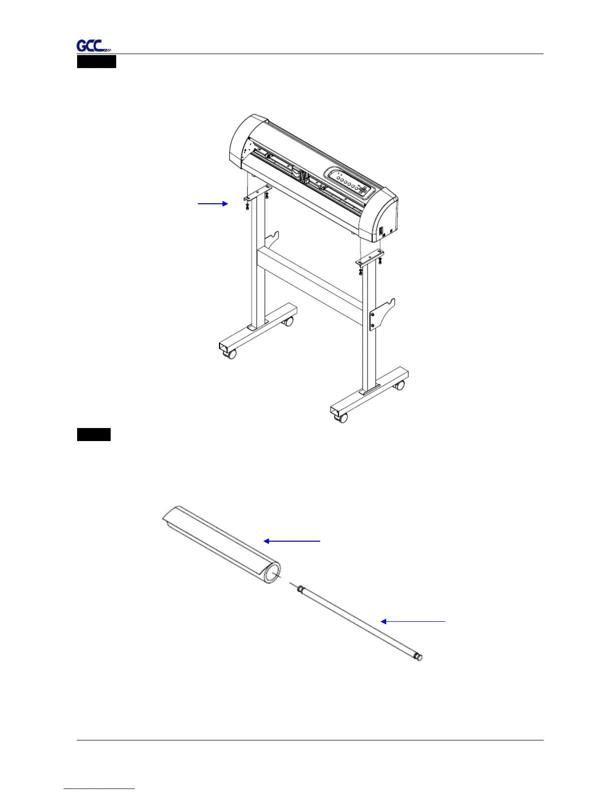 Position the stand under the plotter, and tighten the plotter onto vertical stands with screw-S