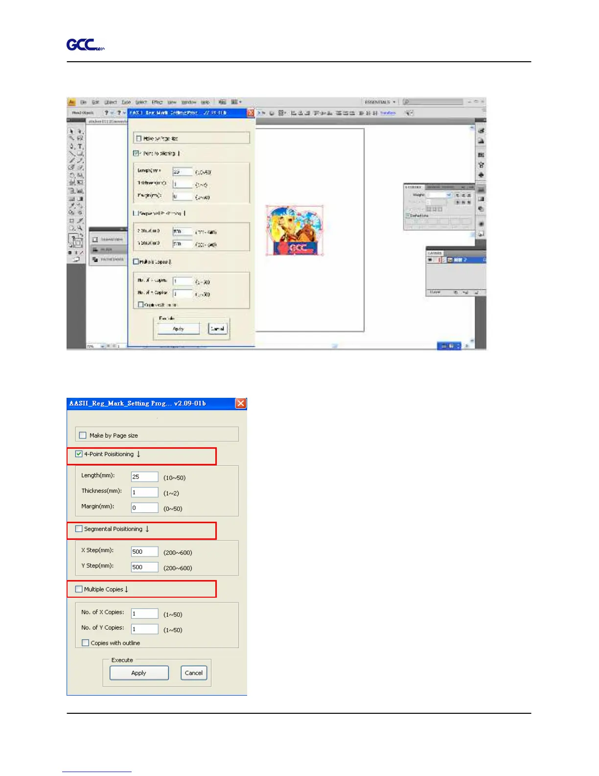 5) Three types of registration marks are introduced here: 4-Point Positioning, Segmental