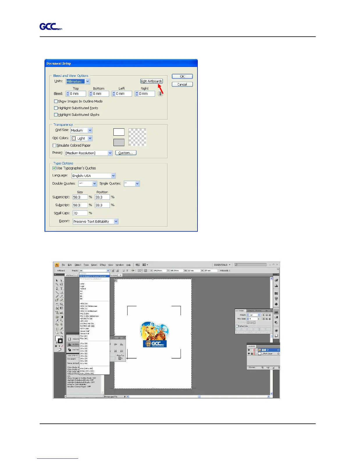 9) Click on “Presets Fit Artboard to Artwork bounds”.