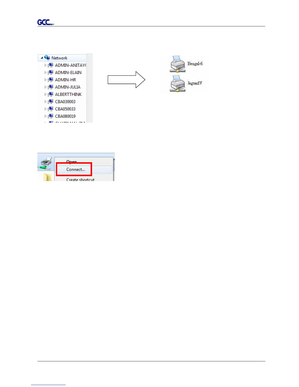 Right-click on printer icon, and select “Connect” to connect A-PC’s printer.
