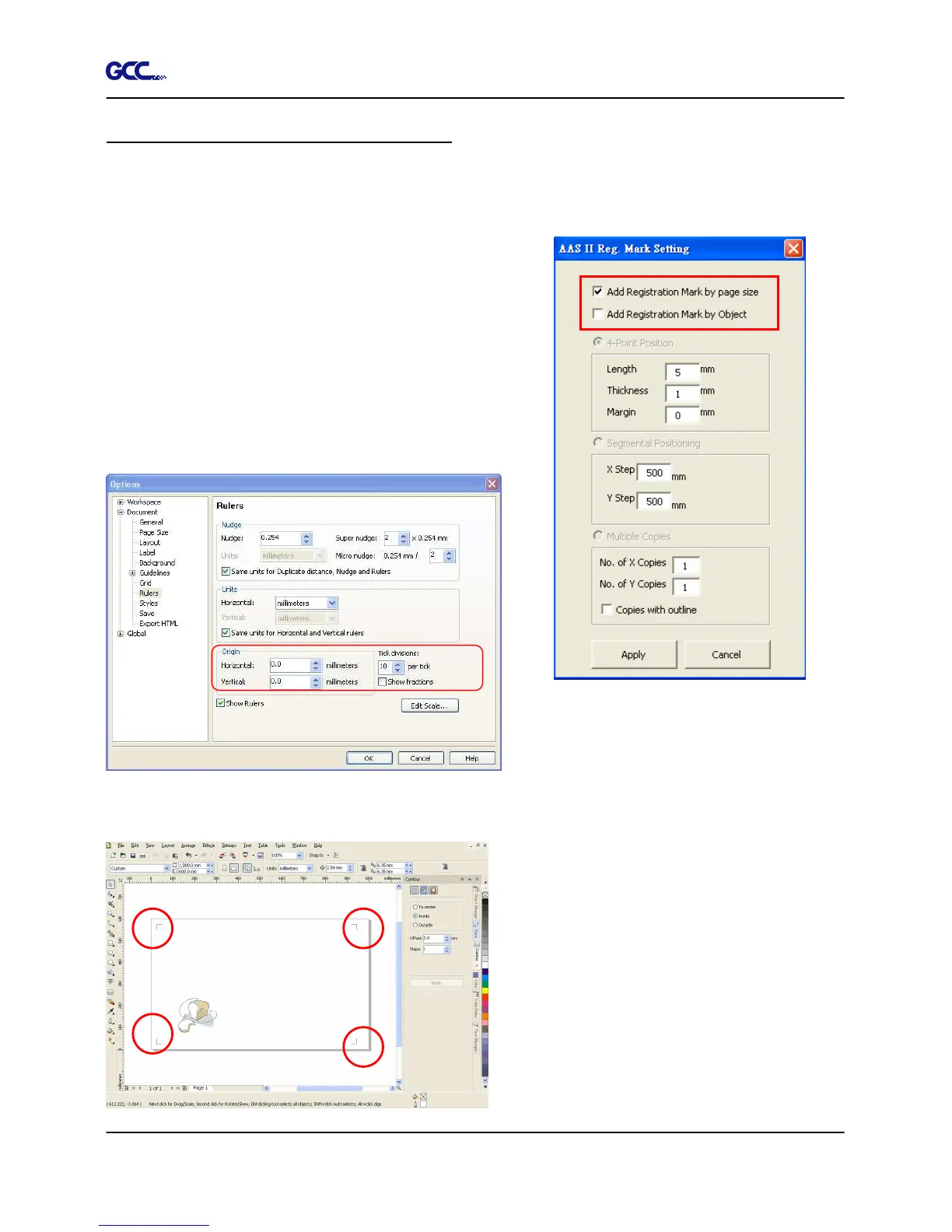 The system will create the 4 marks on the 4 corners of the page as shown in the picture below