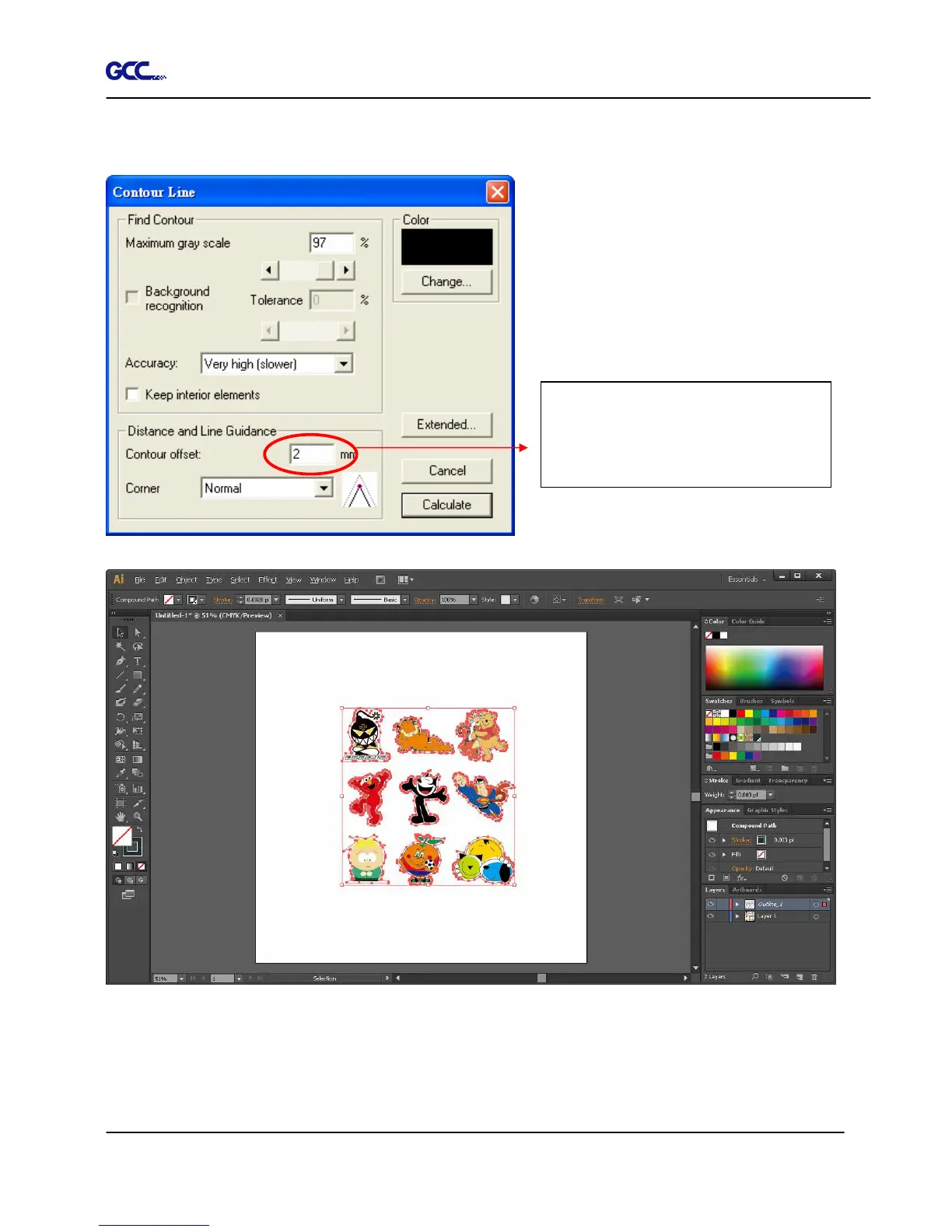 Step 3. Complete contour line settings (including contour offset value) and press Calculate to