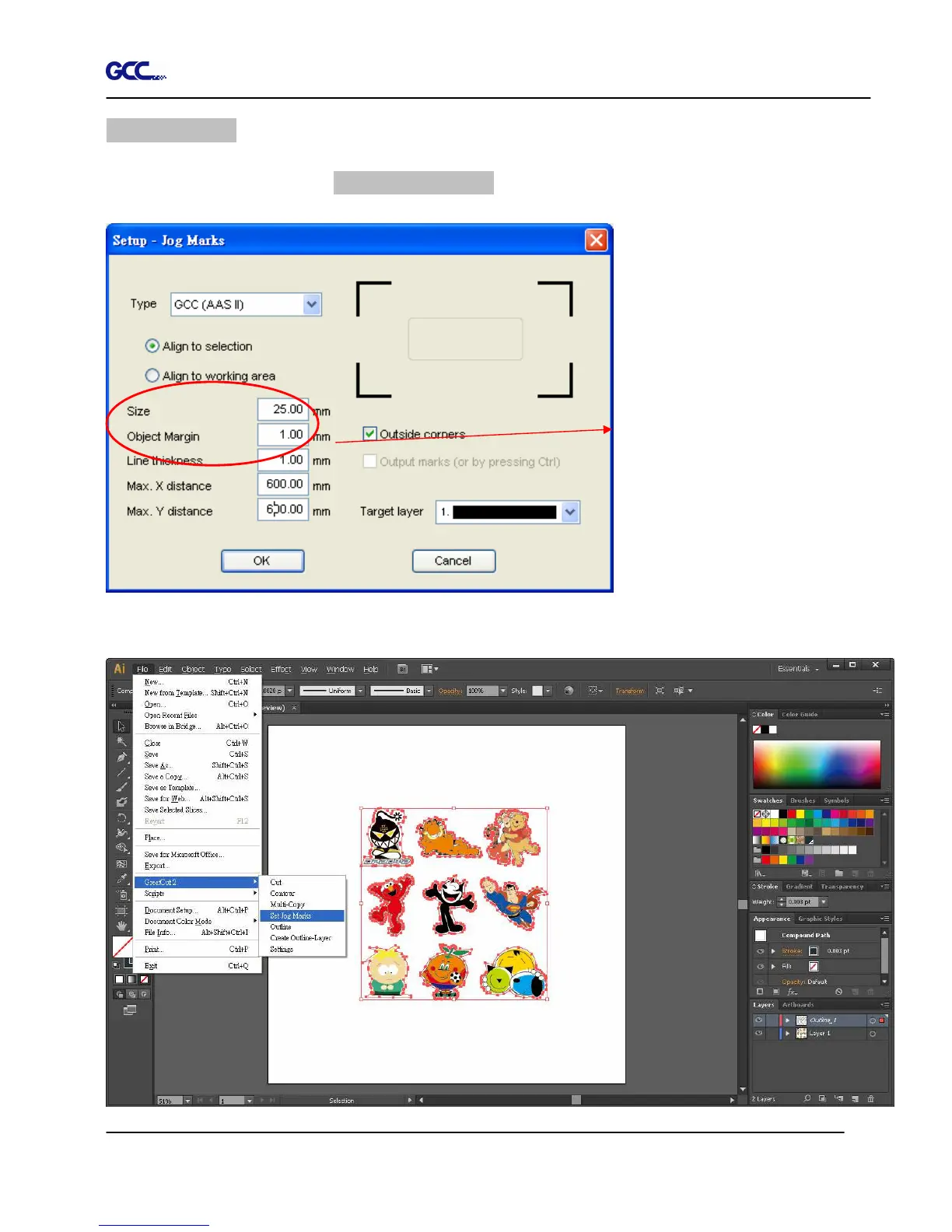 Click the Set Jog Marks Icon in the GreatCut 2 toolbar and the system will create the 4 marks as