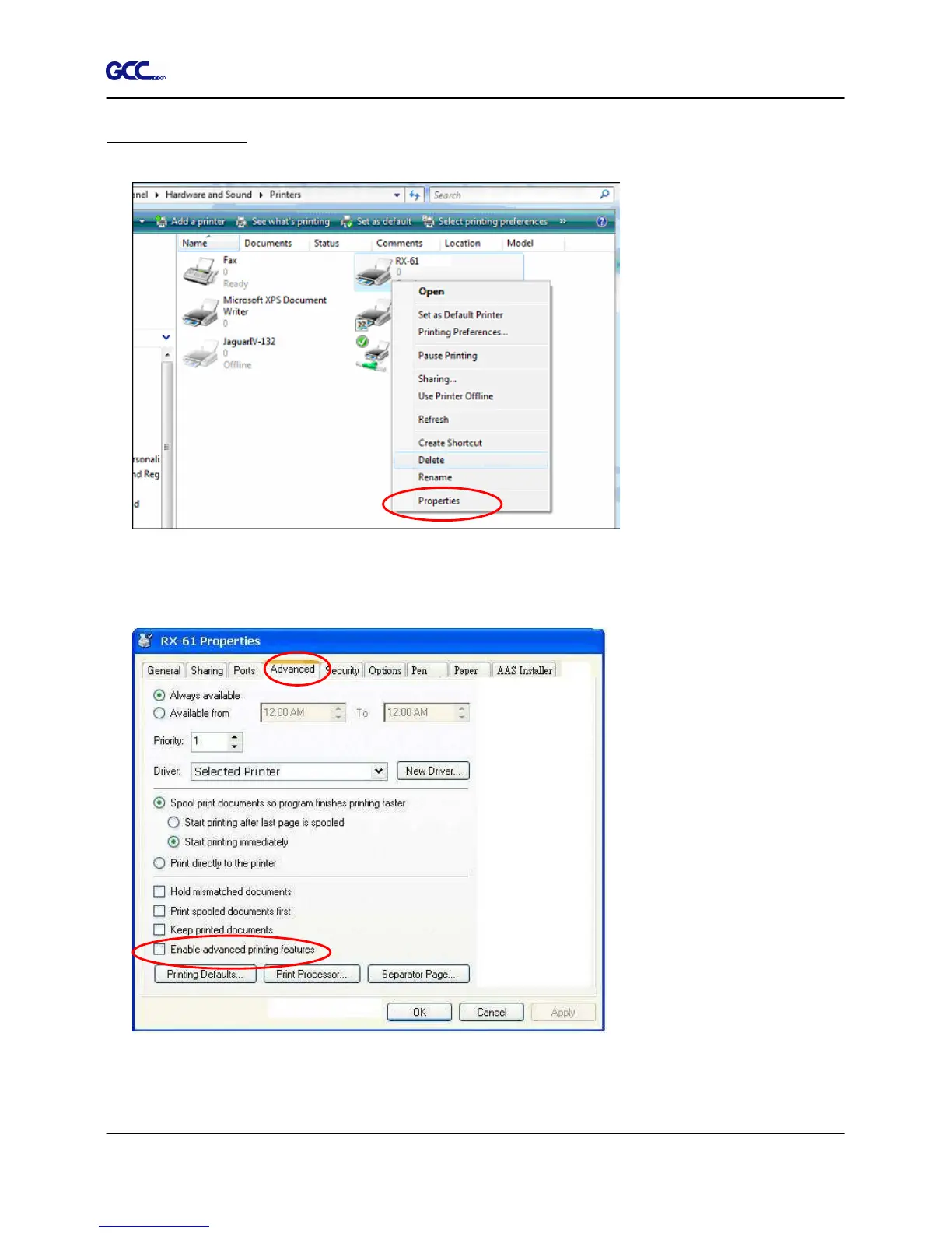 Step1: Right click on the printer and select Properties to open the Printer Properties page
