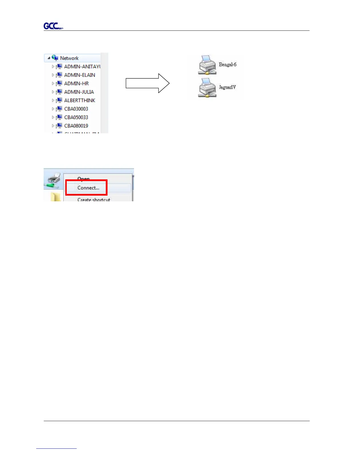 Right-click on printer icon, and select “Connect” to connect A-PC’s printer.