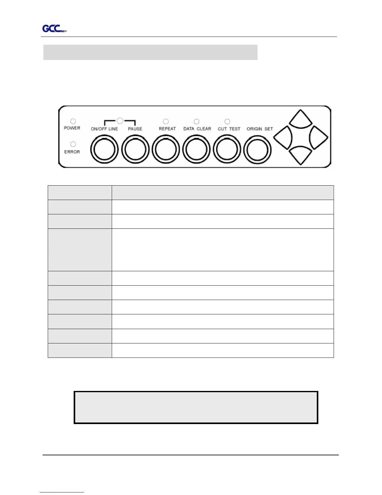 To switch modes or stop cutting job( light up: on-line; light off: off-line )