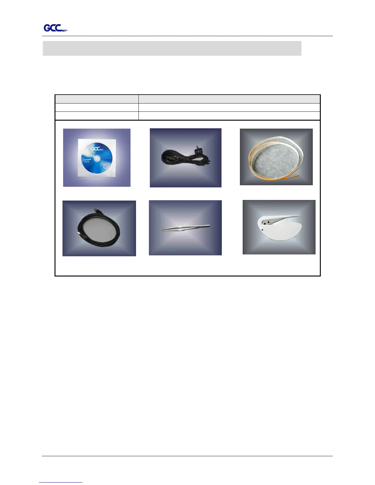 1. Installation CD 2. AC Power Cord 3. Cutting Pad