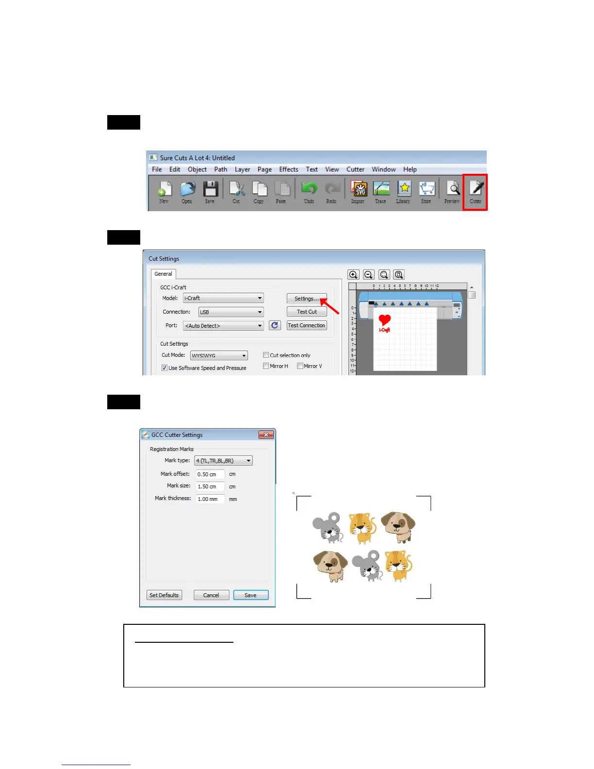 Step 3 Adjust Registration Marks setting under GCC Cutter Settings window if