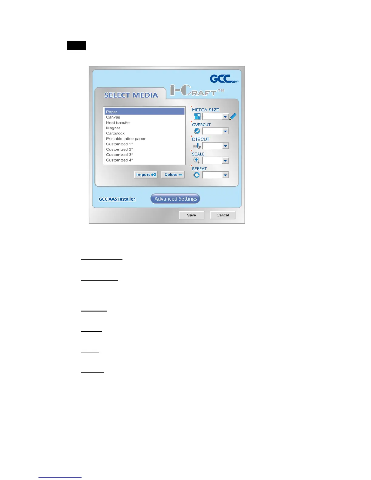 Step3 Select media and advanced setting to set cutting parameters. You can