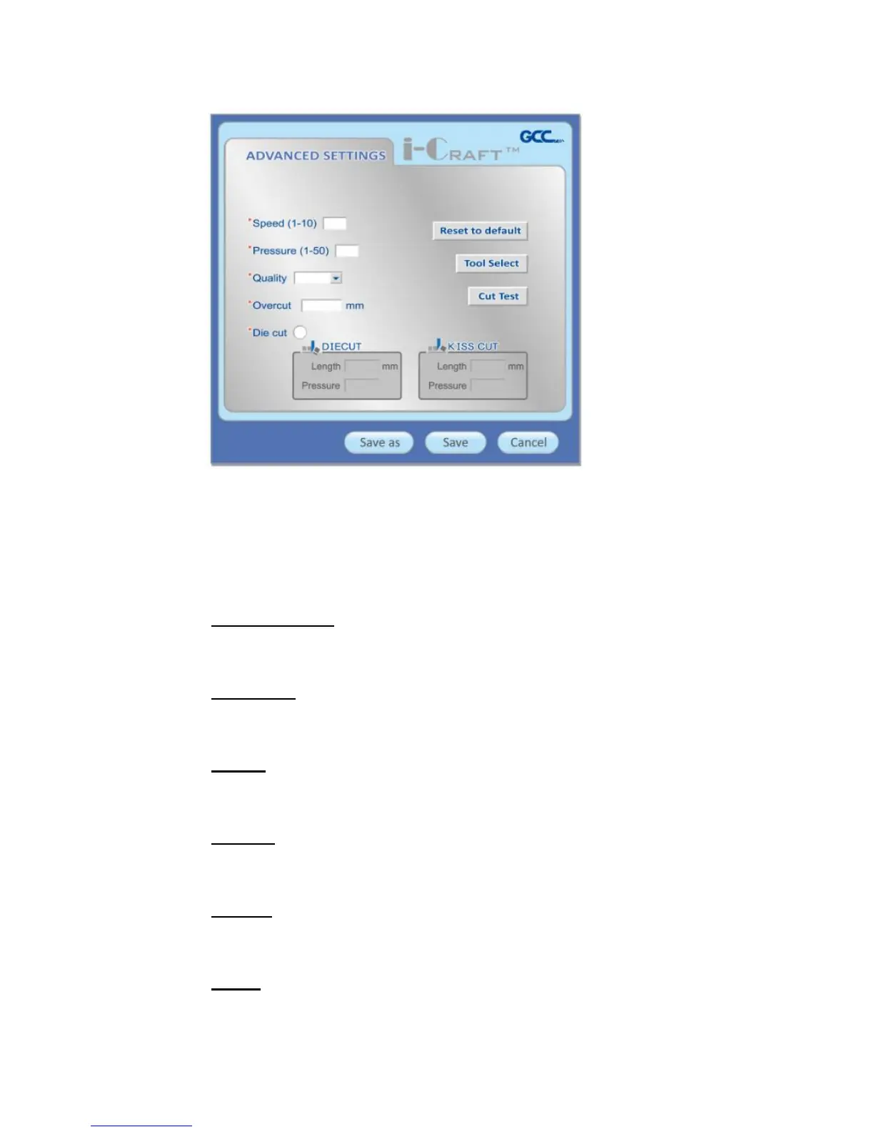 pressure, quality, overcut and diecut if needed. Click “Save as” to
