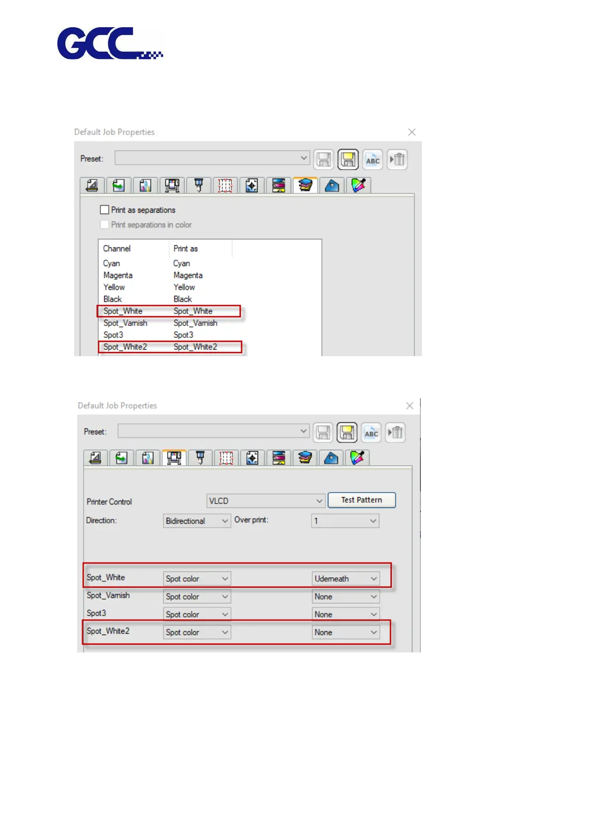 13. Open FlexiPRINT GCC Edition, select Separation and check if the Spot_White and Spot_White2