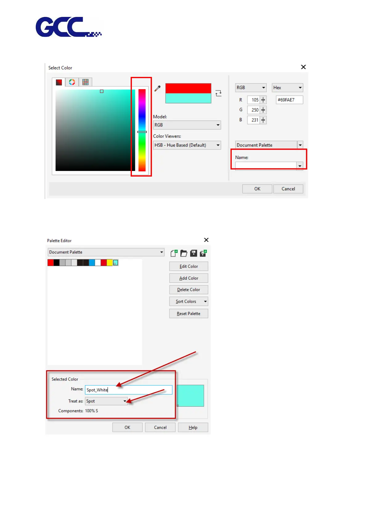 Step 5 Name the new palette to be Spot_White and select Spot from the Treat as. dropdown menu.