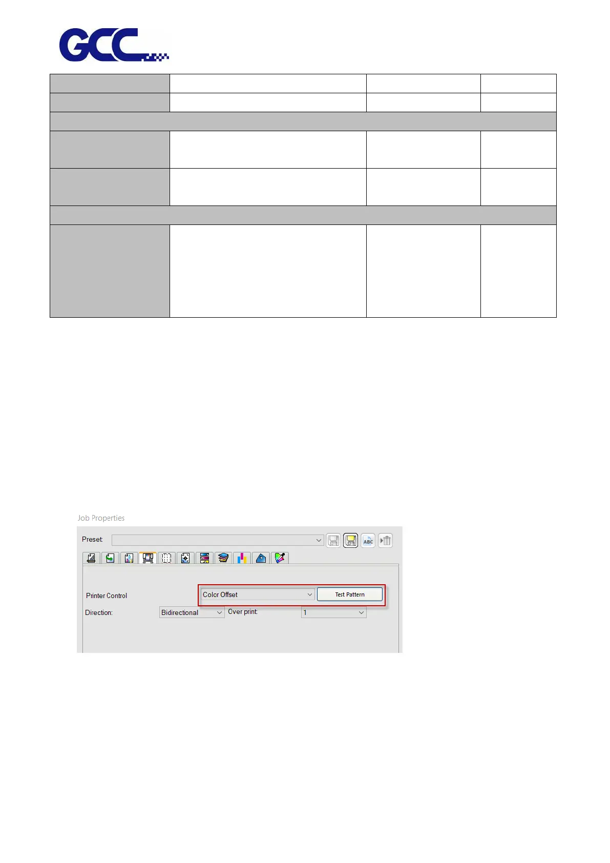 1. Start FlexiPRINT GCC Edition, select Color Offset in Printer Control and click Test Pattern.