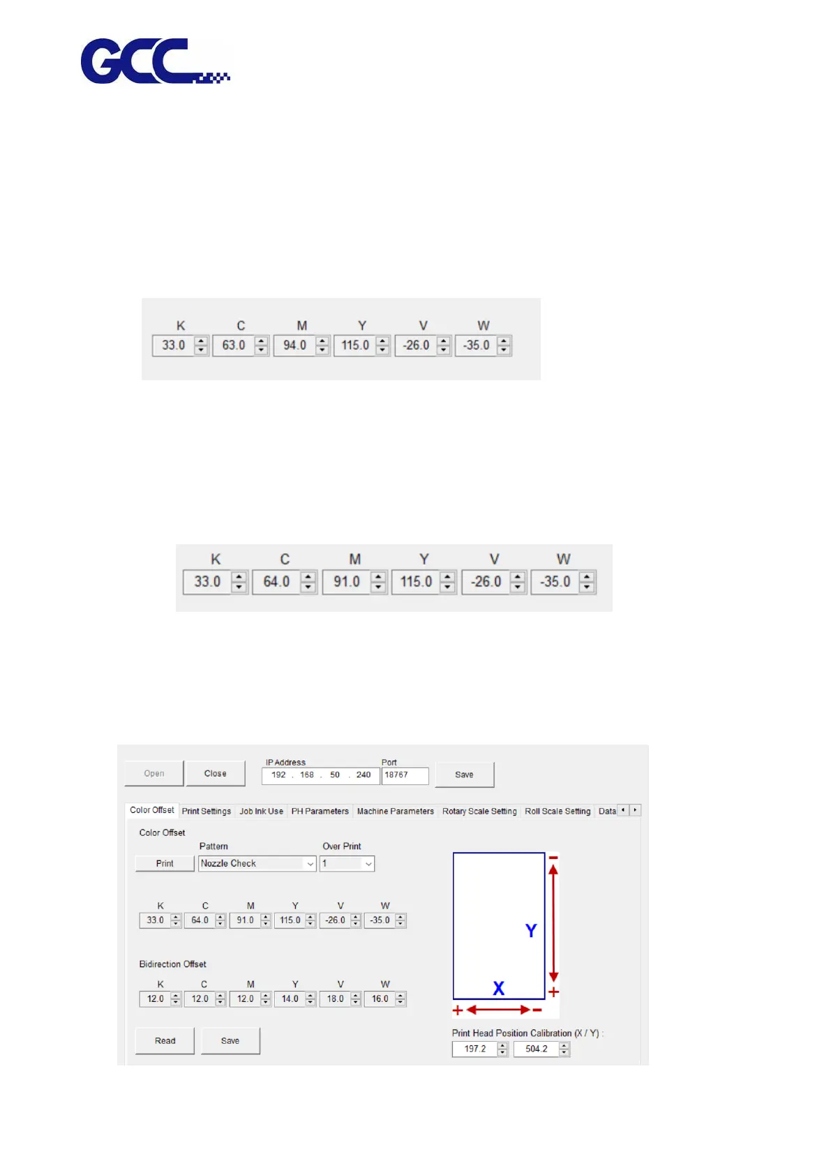 Step 4. After record all the numbers, go to the control interface of “Unidirection Offset「K、C、M、