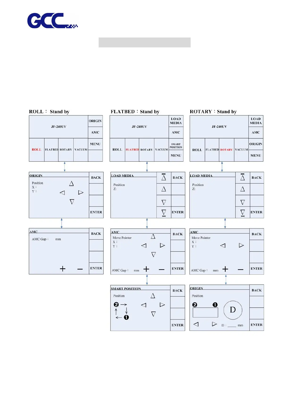 GCC Technologies JF-240UV - Chapter 4 Control Panel; Control Panel Workflow