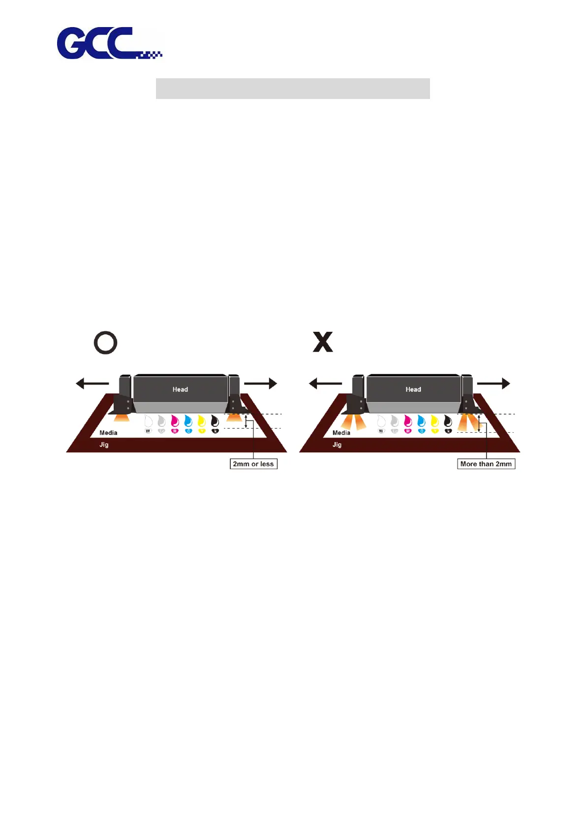 If the height between print media and print head is more than 2mm, it may cause ink droplet