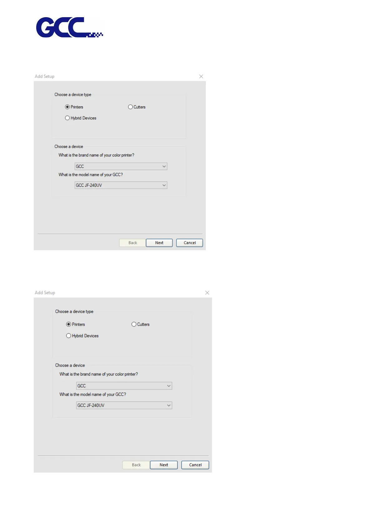 Step 6. Select the output device model from the menu, select Hybrid Devices and select JF-240UV.