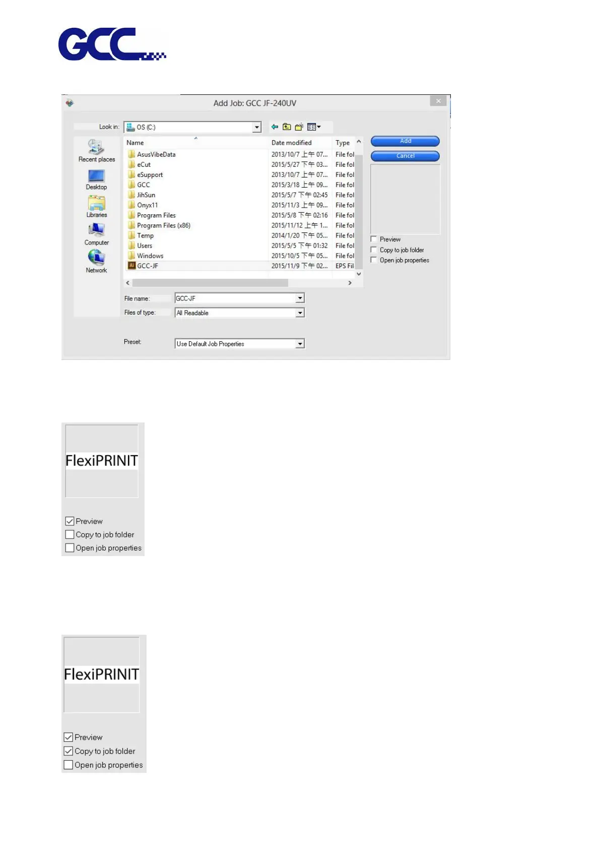 * If job is stored in removable disk or network drive, you need to copy it to the local working folder,