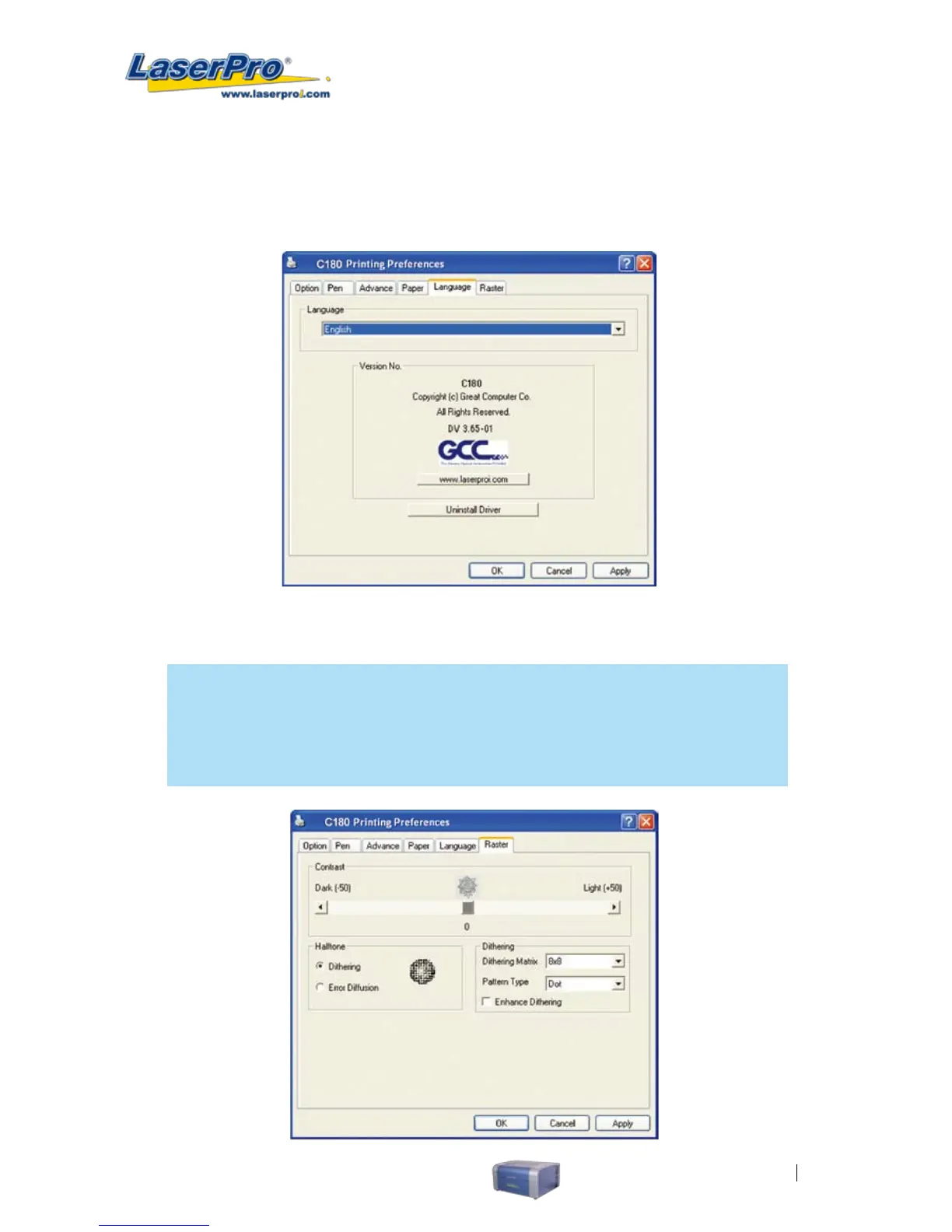 5.2.3.6 C180 Print Driver >> Raster Page