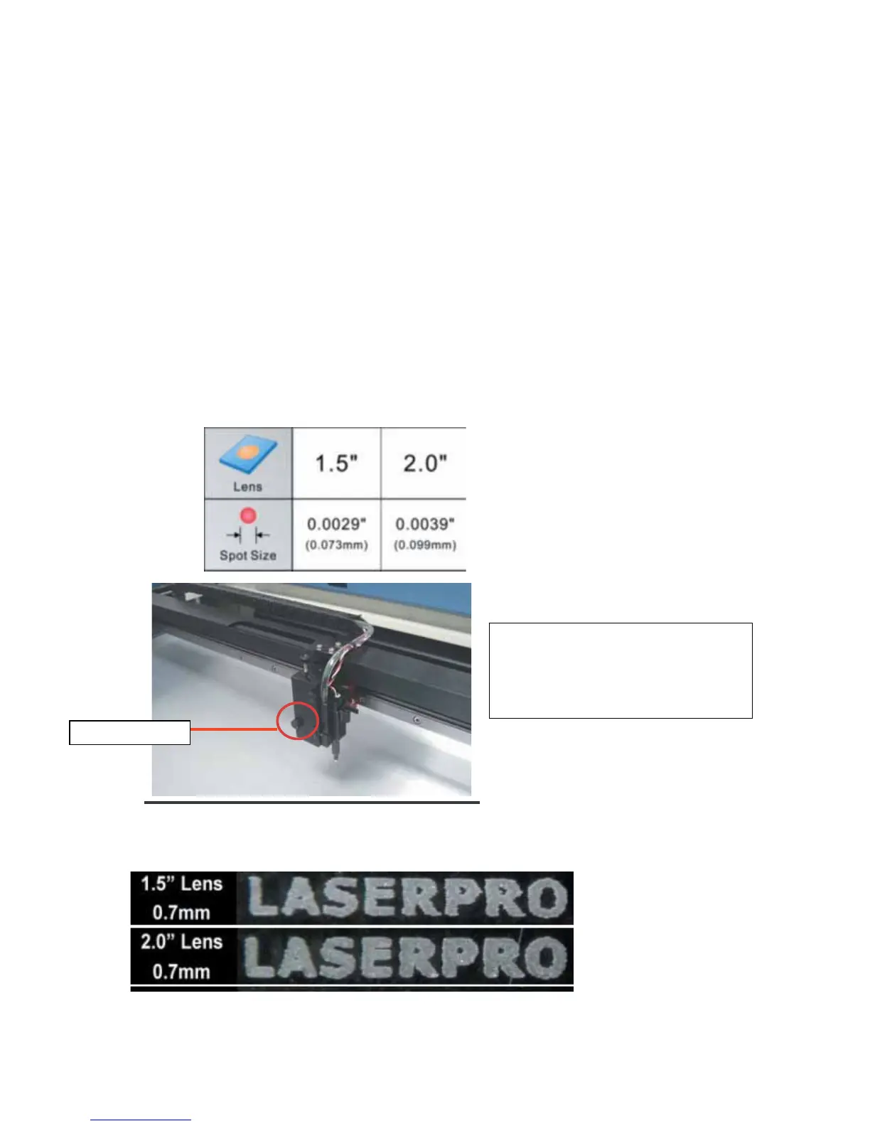 y 2.0” Lens: The 2.0” lenses are good for normal engraving and cutting of up to 10mm thick acrylic
