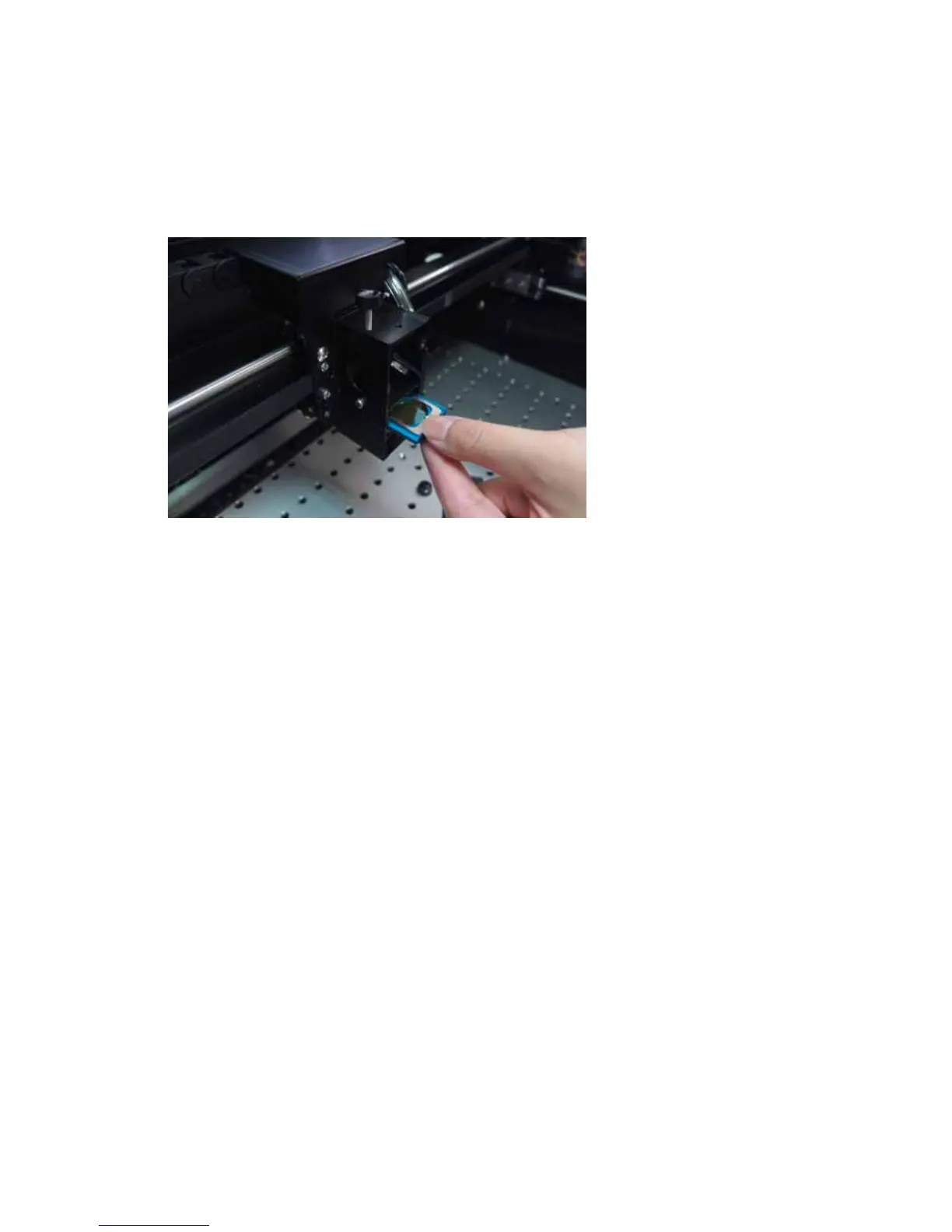 1) Unscrew the three thumbscrews (front face of the laser head) securing the laser carriage panel