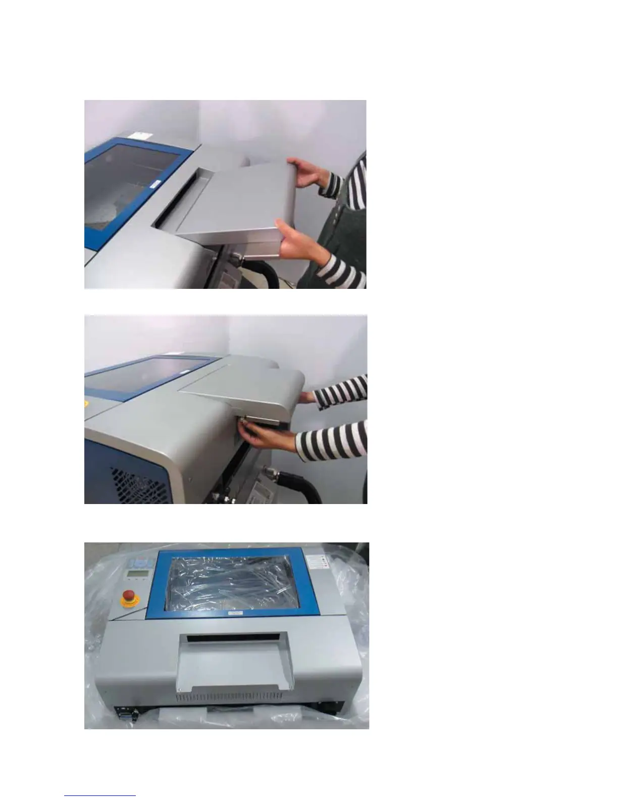 1) Remove the exhaust connecting box from the machine and put the machine into the EPE foam first.