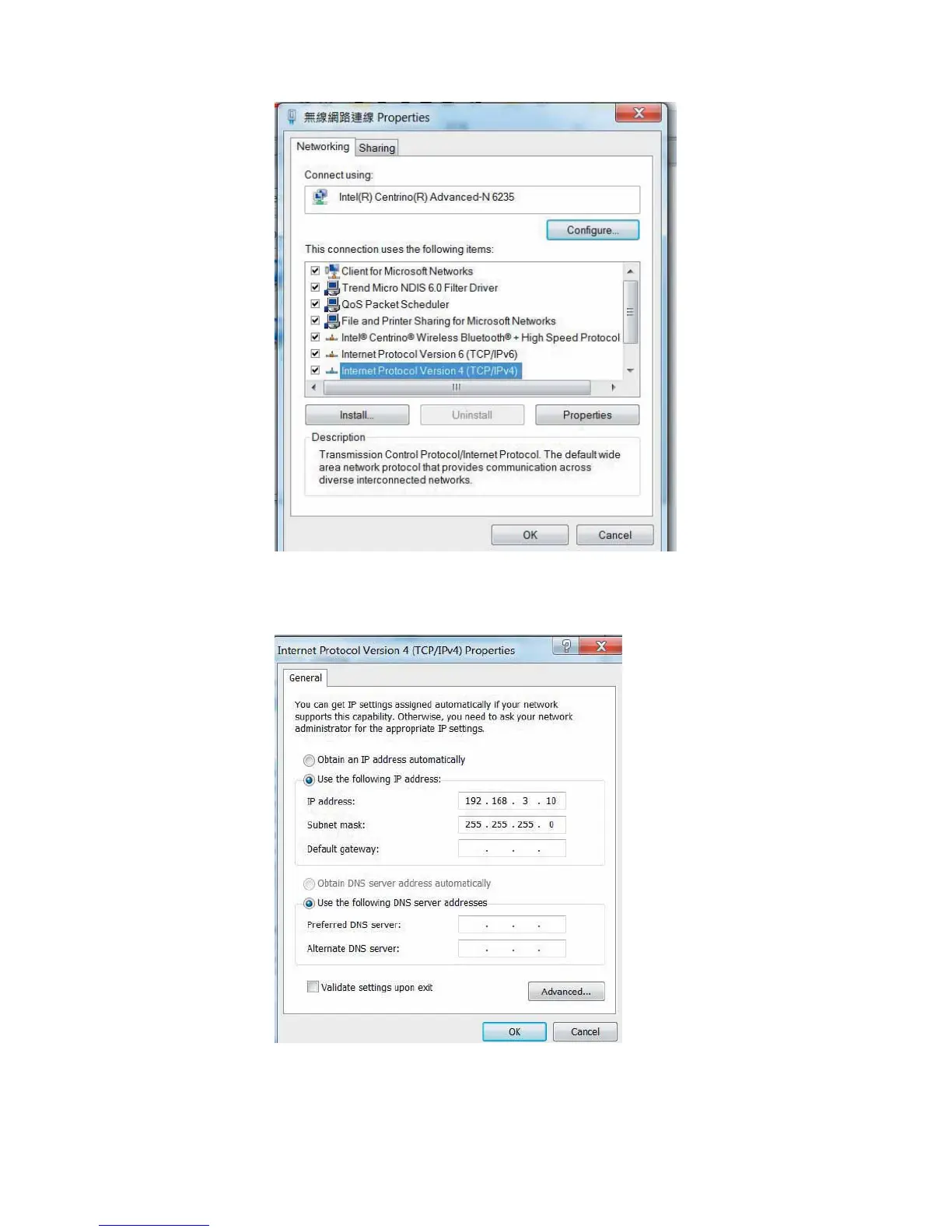 Note the IP address 192.168.3.X (X value can be 1~255, while can’t be the same number as machine