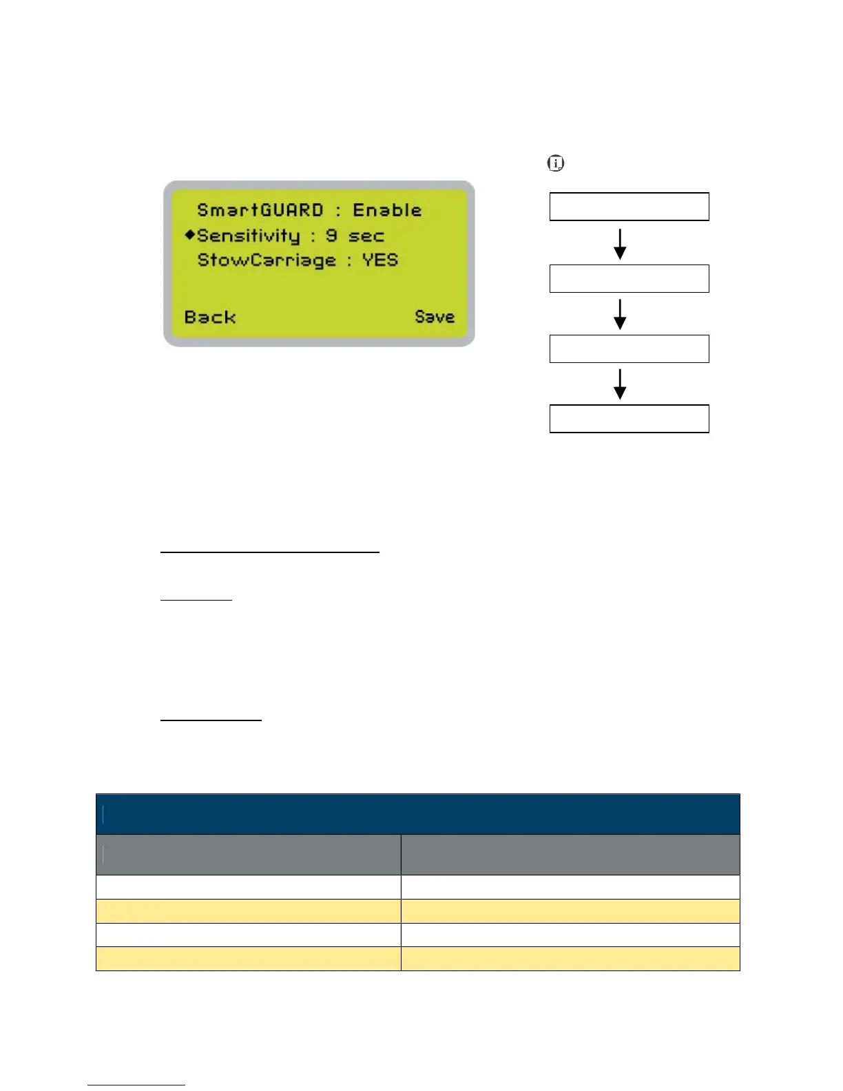 Press directional key (Left or Right) to enable the SmartGUARD device or disable it.