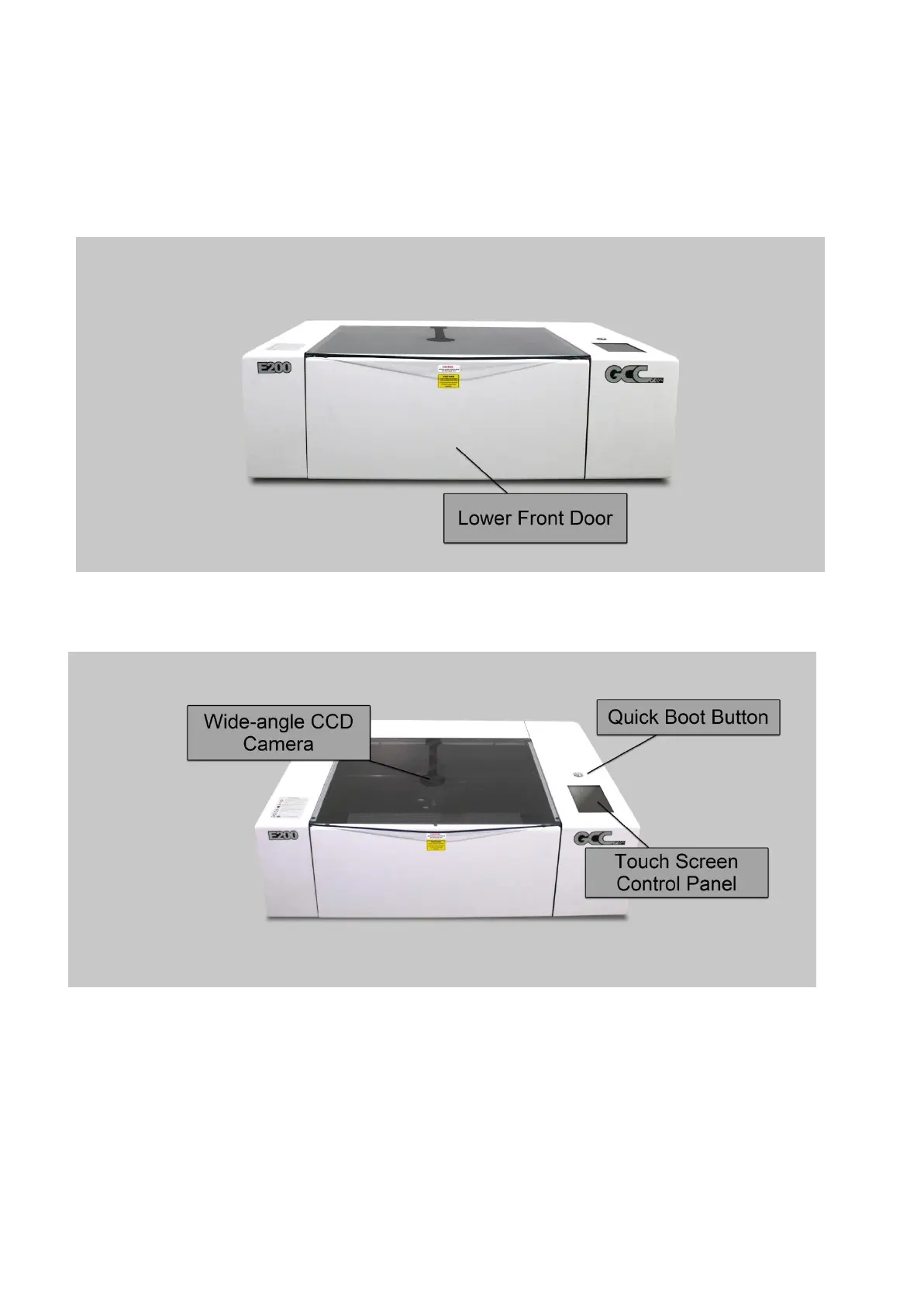 GCC Technologies LaserPro E200 Series - 3.1 Front View; 3.2 Top View