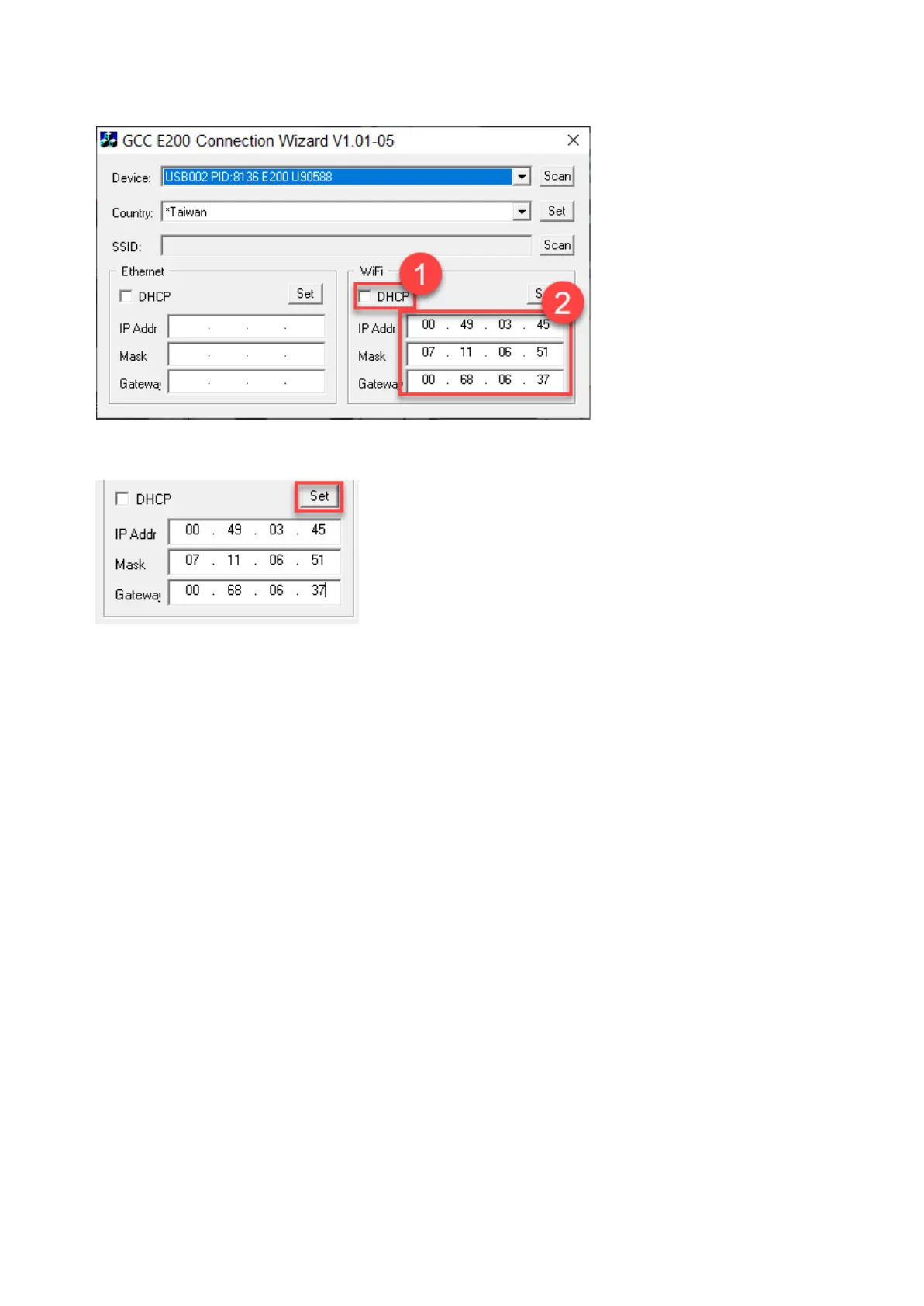 4) After entering those parameters, click the “Setbutton to save the setting.