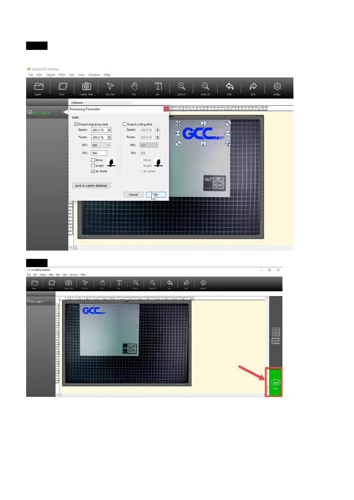 Step 6 Parameter setting is ok, press print to process the engraving job.
