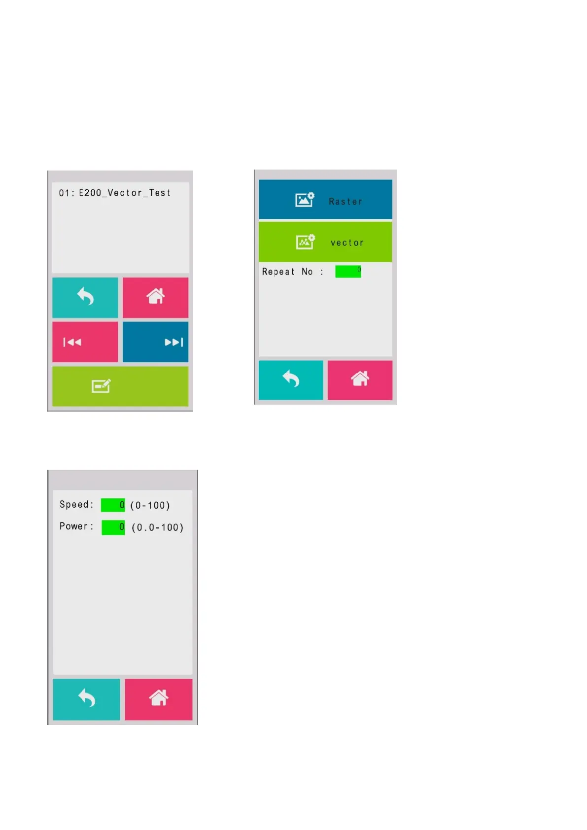 The File Edit Raster Page allows you to edit the raster power and speed settings. These settings correspond