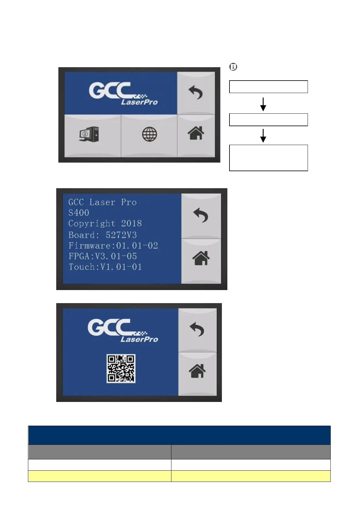 The Information Page allows you to view information regarding the system such copyright, laser