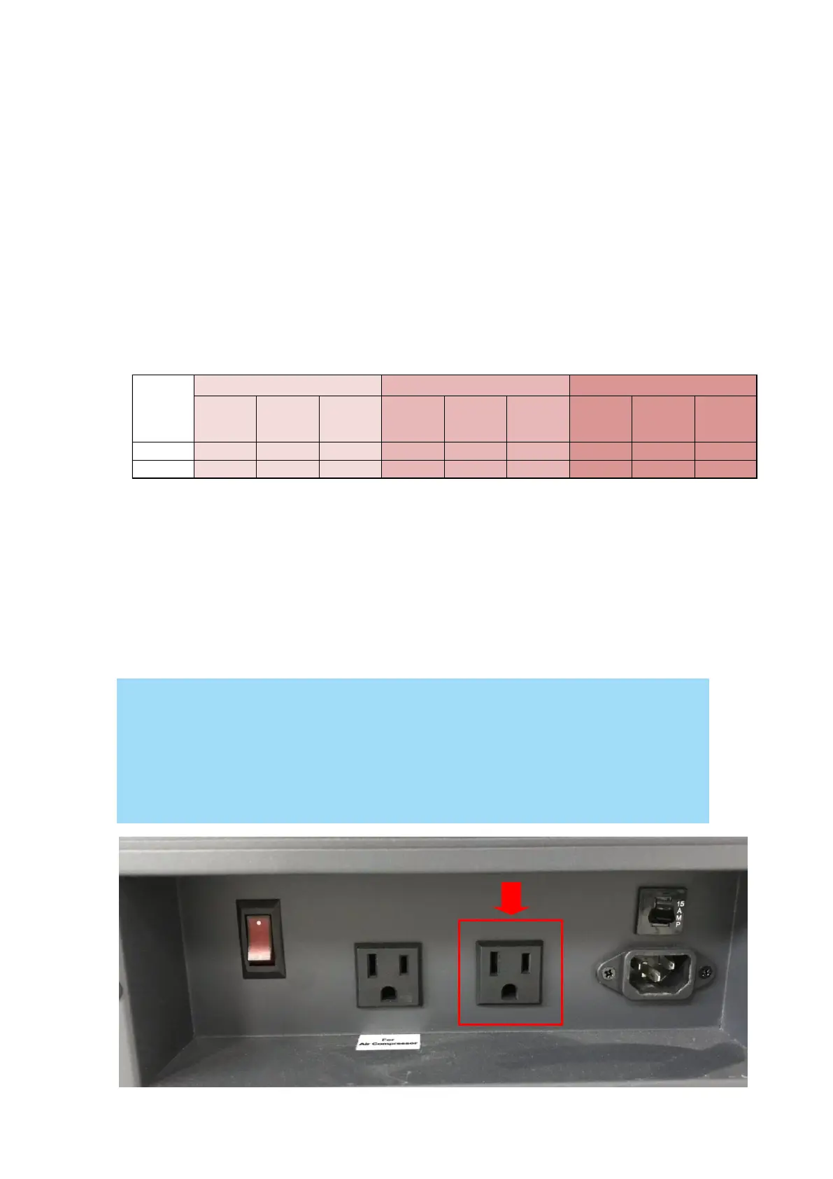 hand side of the lower machine cabinet, make sure that the air compressor is connected