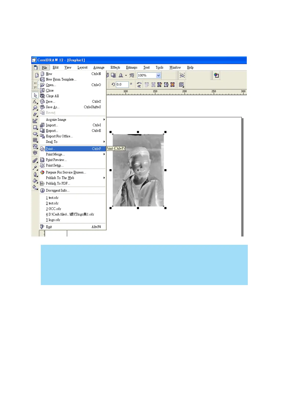 8. Now you are ready to output the modified image by clicking File/Print