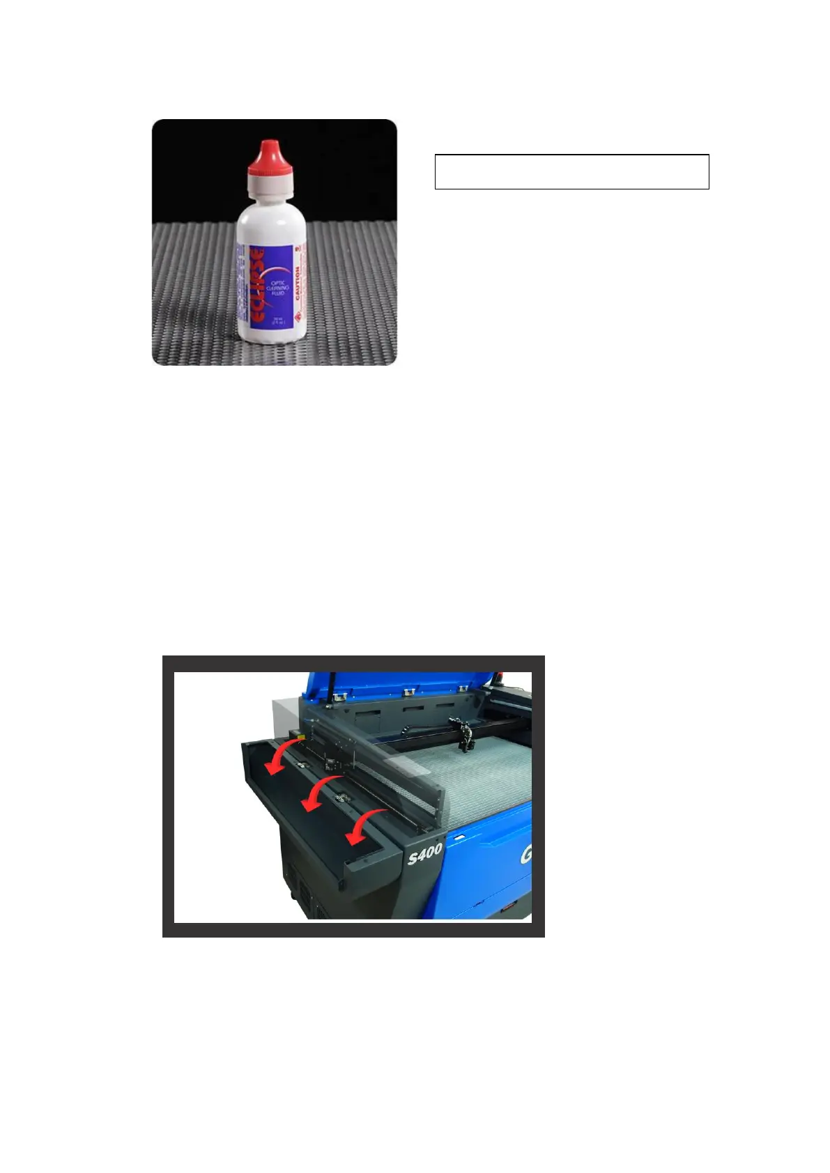 LaserPro S400. Lift the lid to the maximum (indicated by a small click) to engage the latch (as