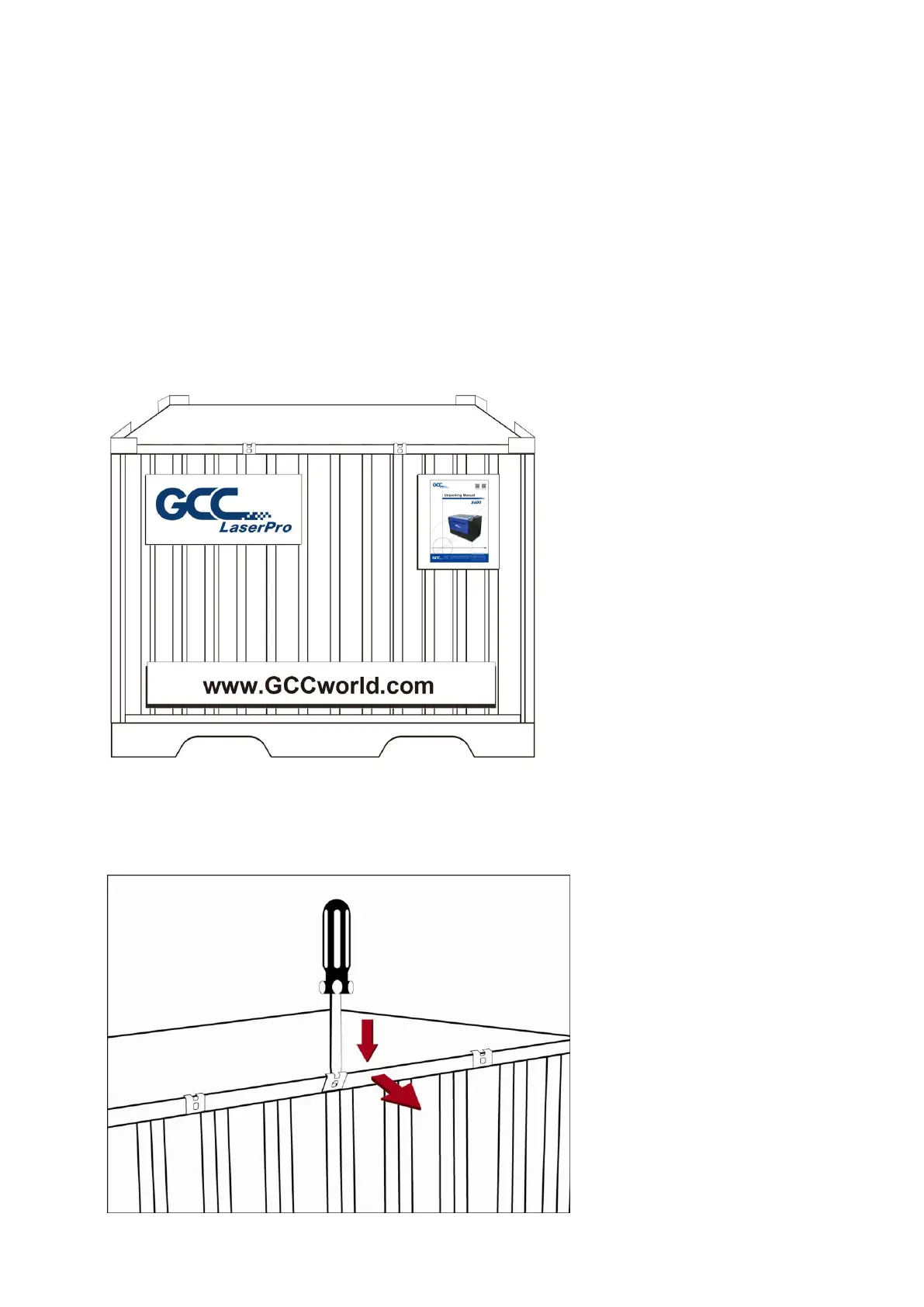 Step 1: Remove the 6 metal clips that secures the top panel to the crate by using a flathead