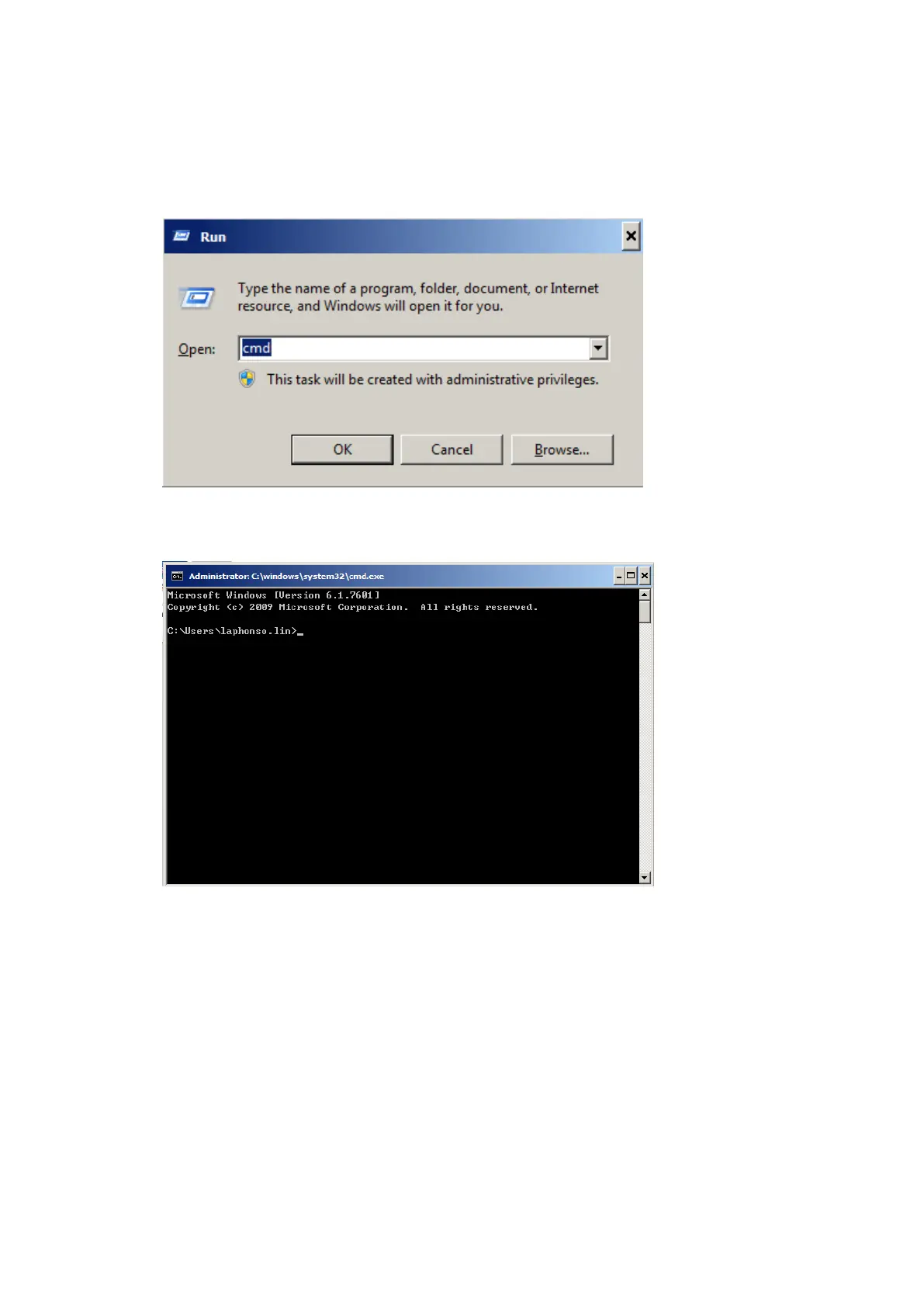 i. Open command line mode in your windows system (Press Windows key + R, the “Run” window will