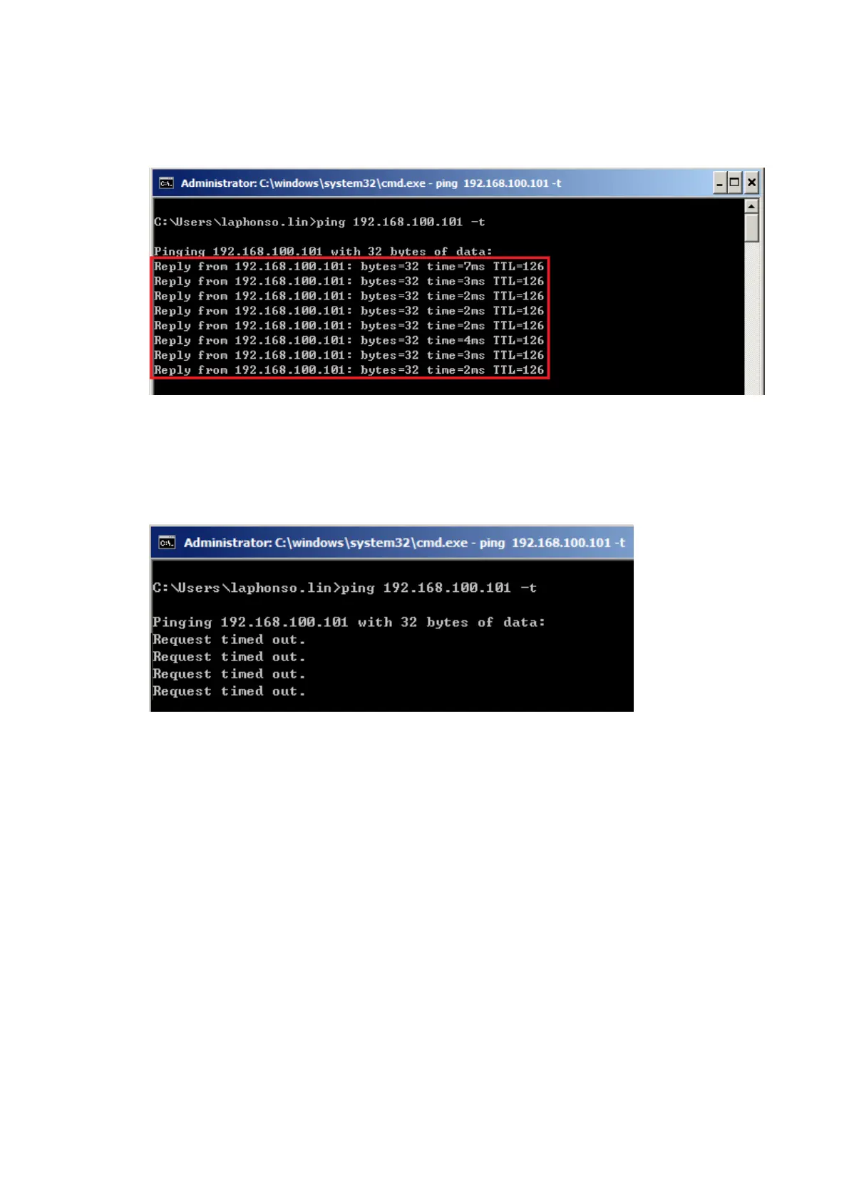 a. For cases the communication is not ok (can’t get response, just have “Request timed out” from