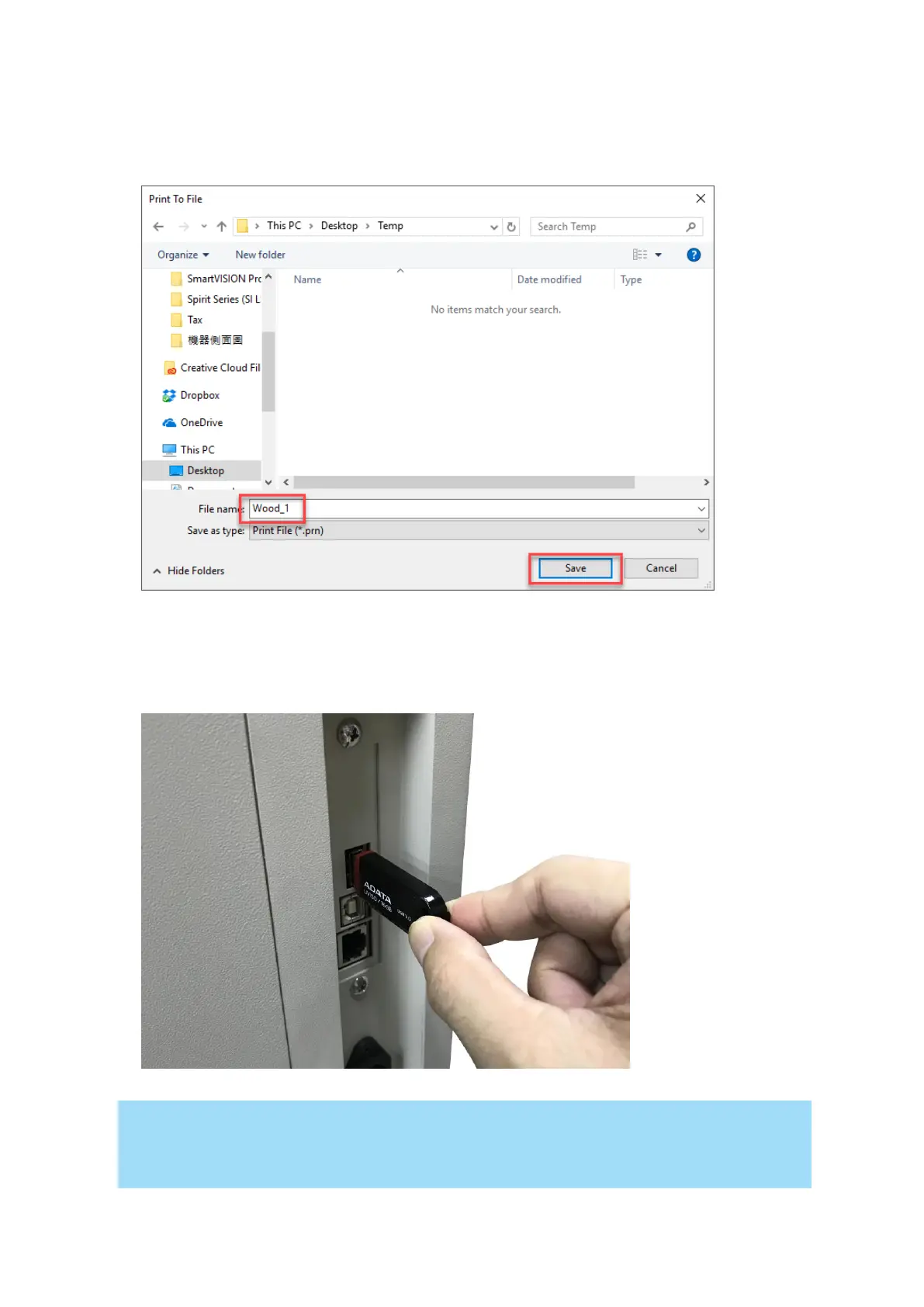 • USB storage function only supported for the PRN format, you can convert the file to PRN