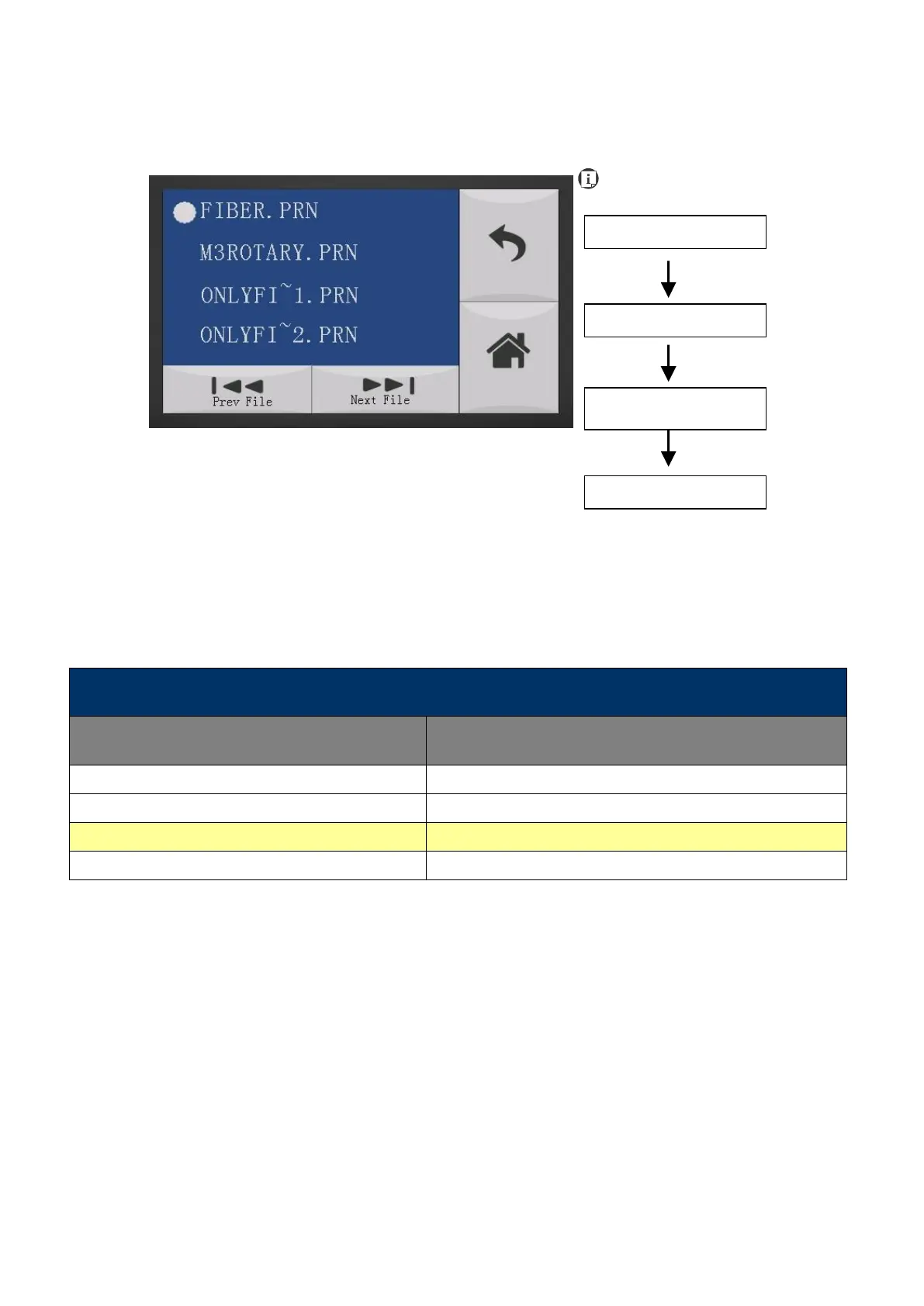 The USB Drive File Page allows you to load file from USB storage. You can scroll through your job