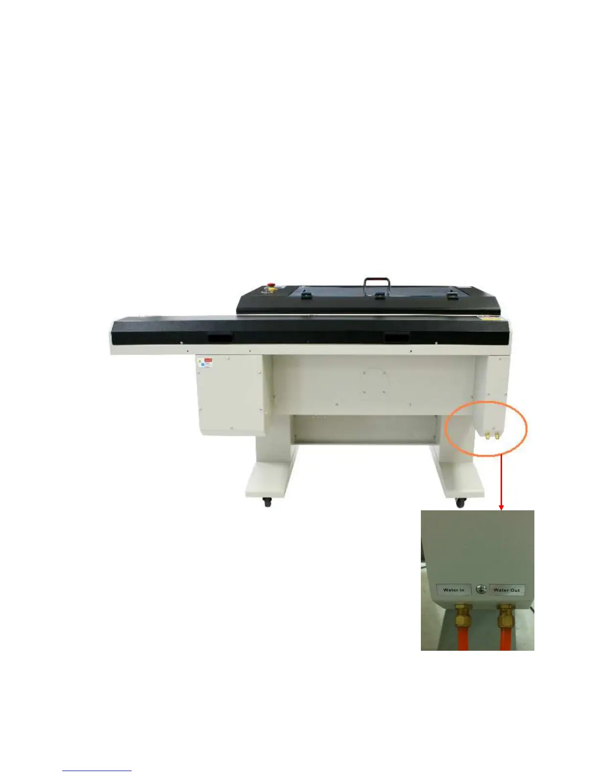 Connect the water hoses between the machine and the water chiller. Make sure the hoses are