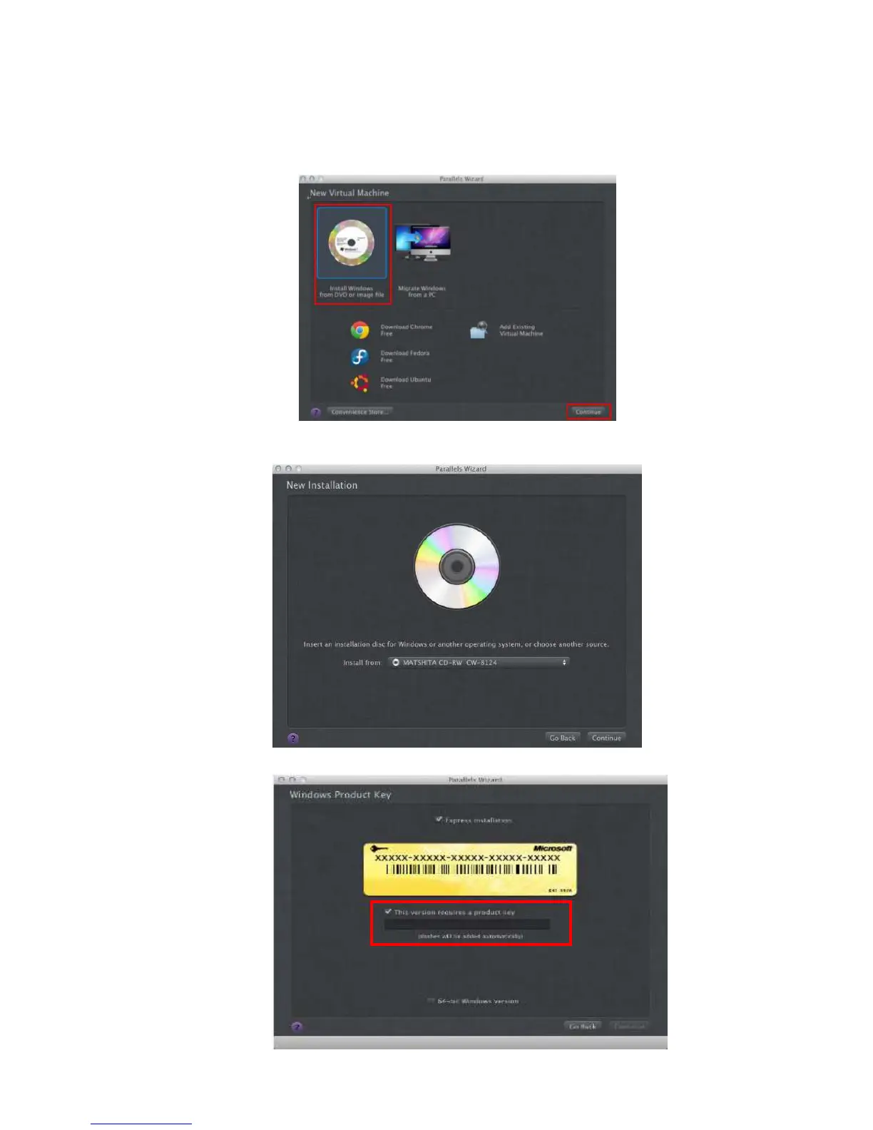 10) Press “Install Windows from DVD or image file” then press “continue” to install