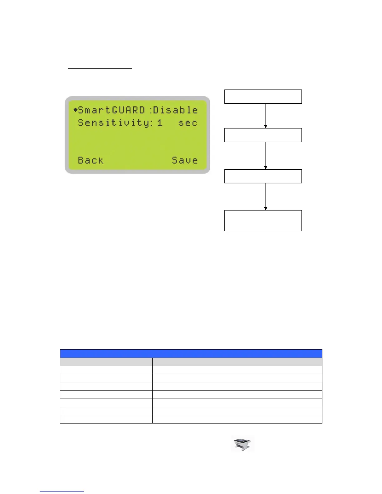 Press directional key (left or right) to enable the SmartGUARD device or disable it.