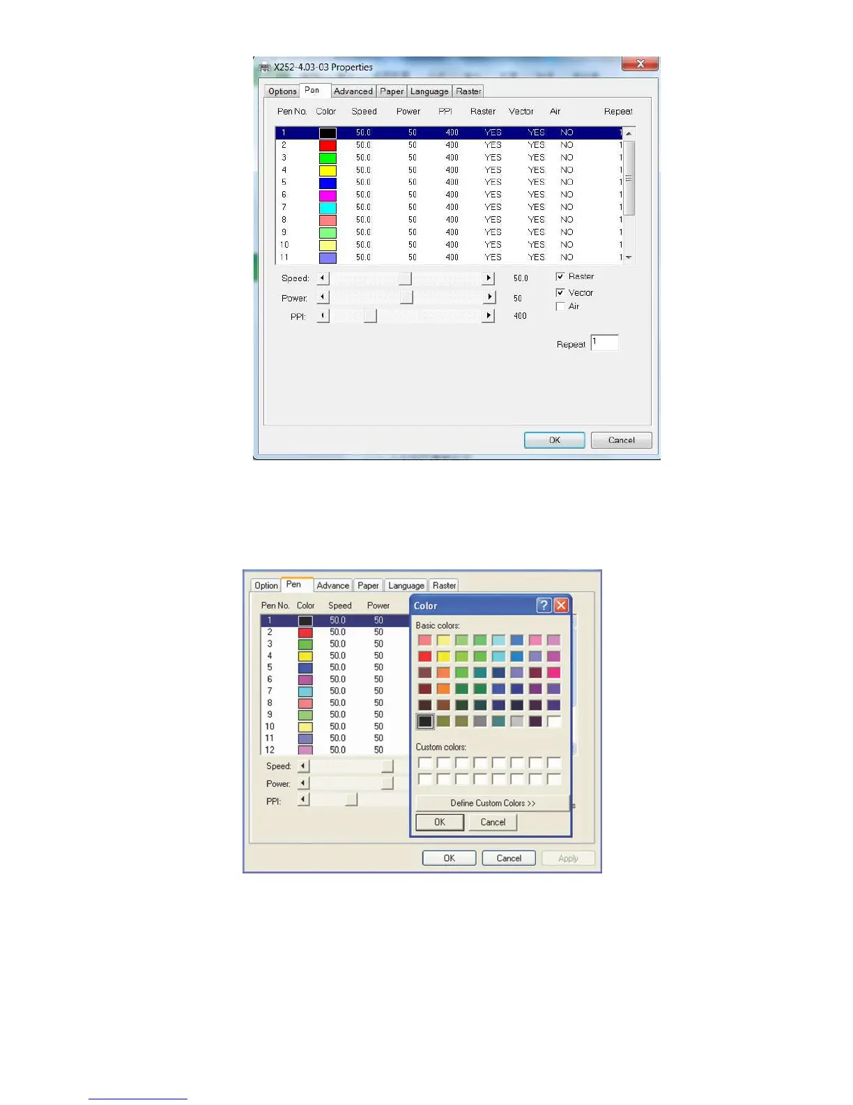 If you would like to specify your own colors to designate to a particular laser setting, then all you have to do is