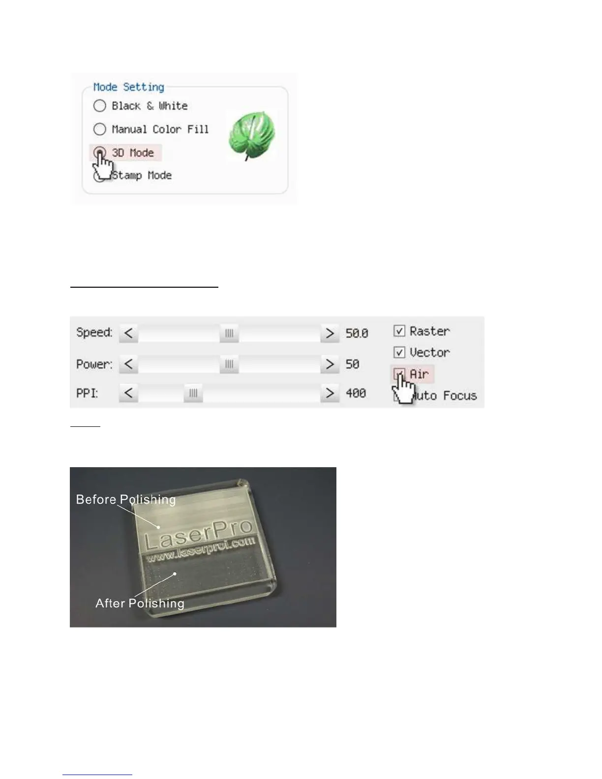 LaserPro Application Lab provides a few reminders that may require your attention during the 3D engraving in