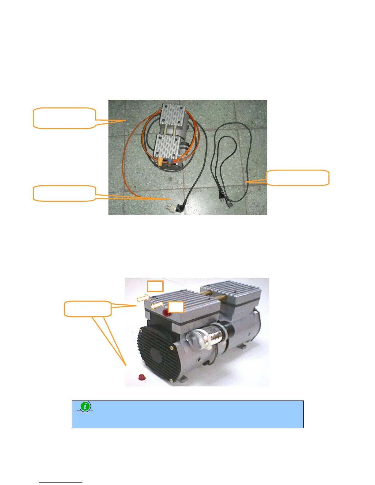 1) Remove the plugs on the air compressor to expose the air inlets.