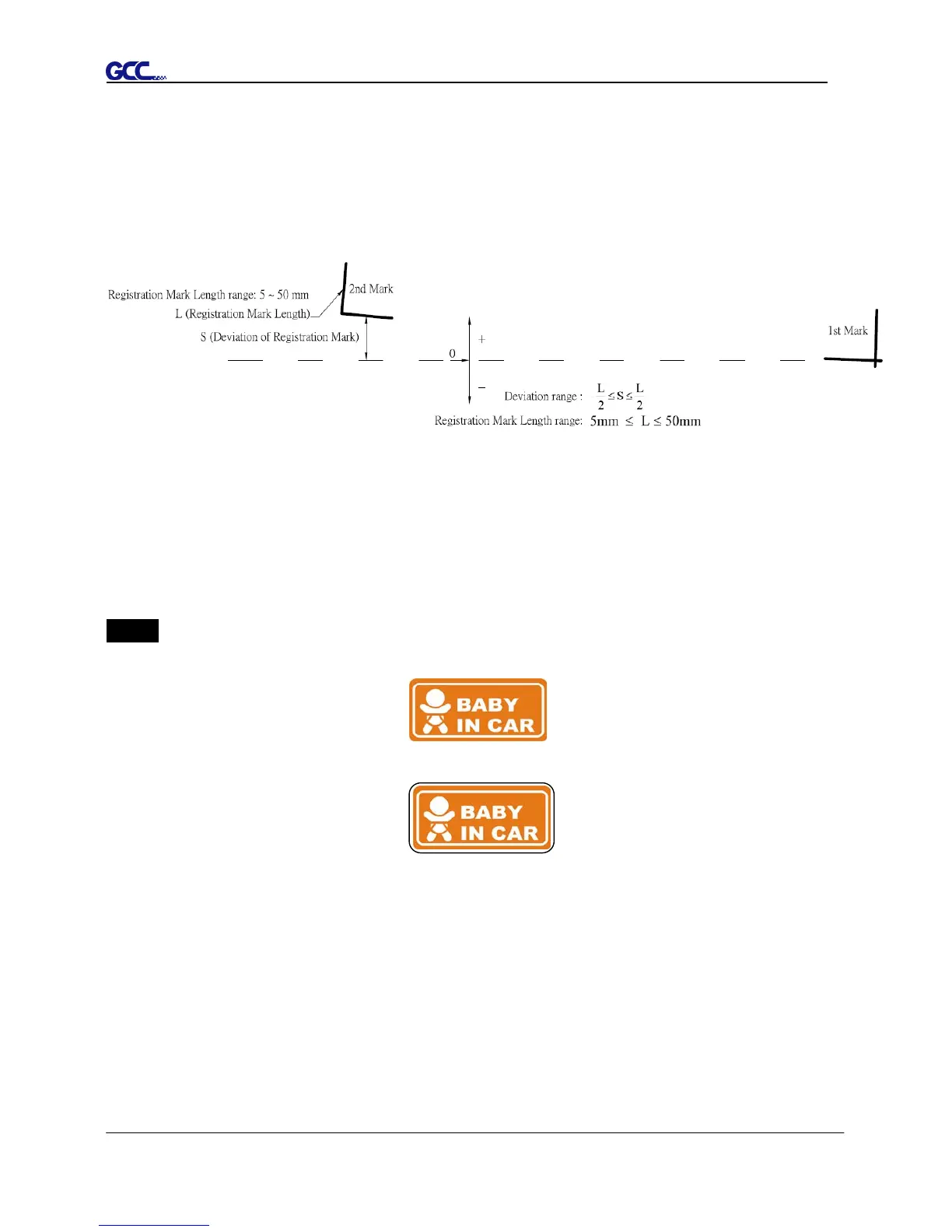 registration marks are successfully detected. Deviation exceeds the range below will lead to