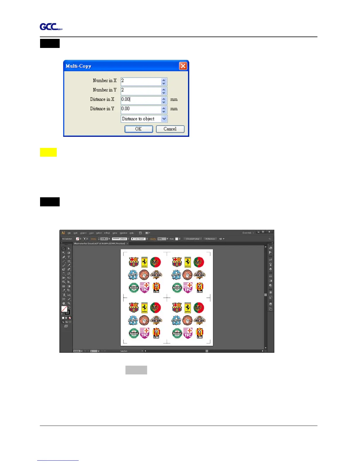 Step 6 The system will create several copies of the object with registration marks as shown in